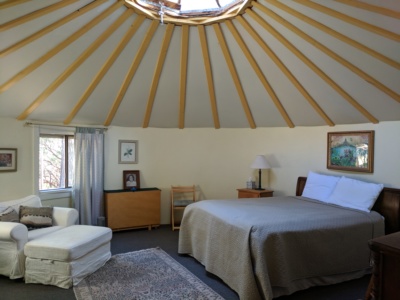 Contentment is a sweet Yurt-style cabin, nestled in the trees just down the hill from the main area. It is close by, yet it has a secluded setting in the forest. One of the two cozy bedrooms could be used for meditation, yoga postures or relaxing.